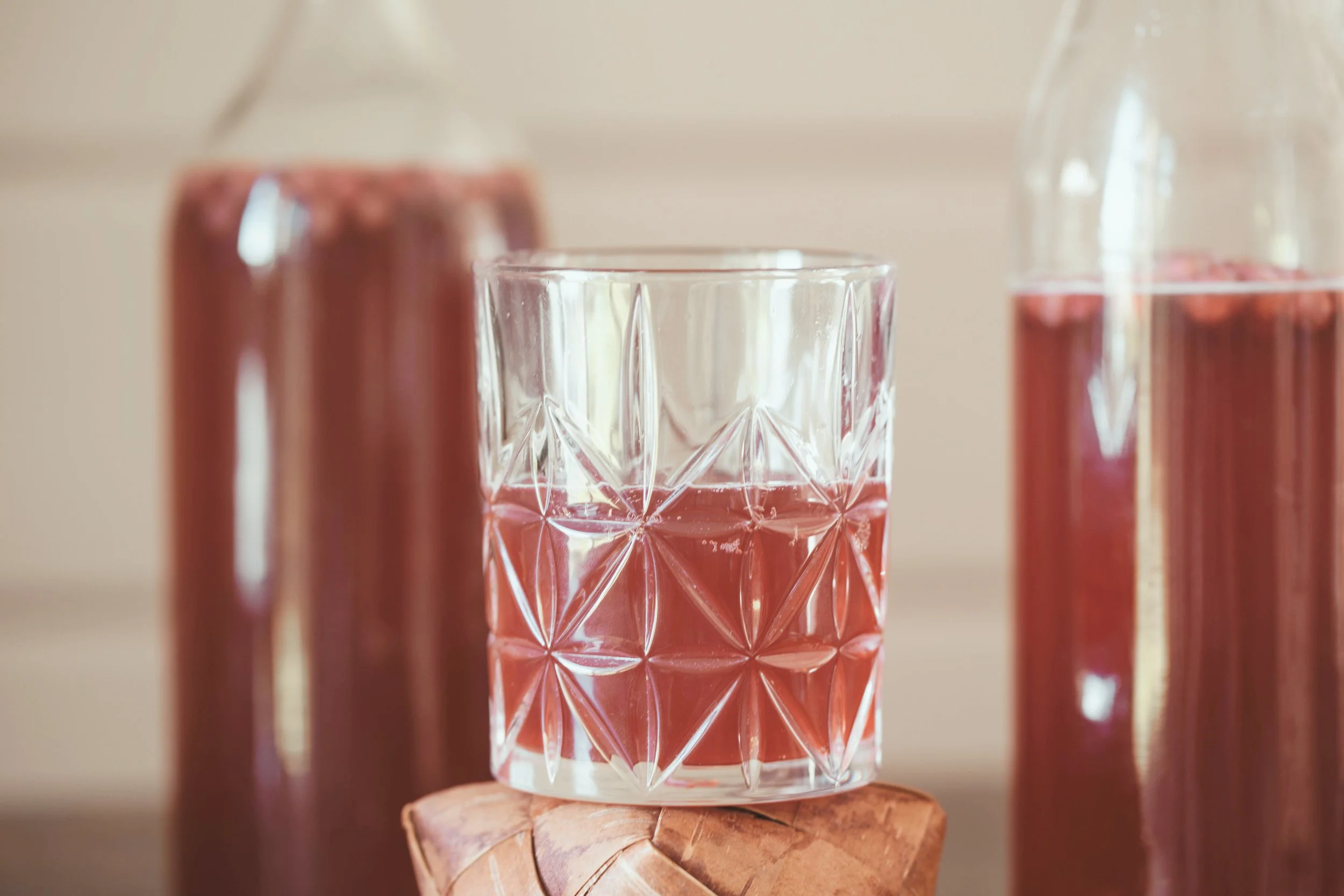 Lisää kombucha pulloihin ja sulje korkit. Jätä kombucha-astiaan scobyn seuraksi noin 3dl kombuchaa, eli seuraavan erän startterineste.